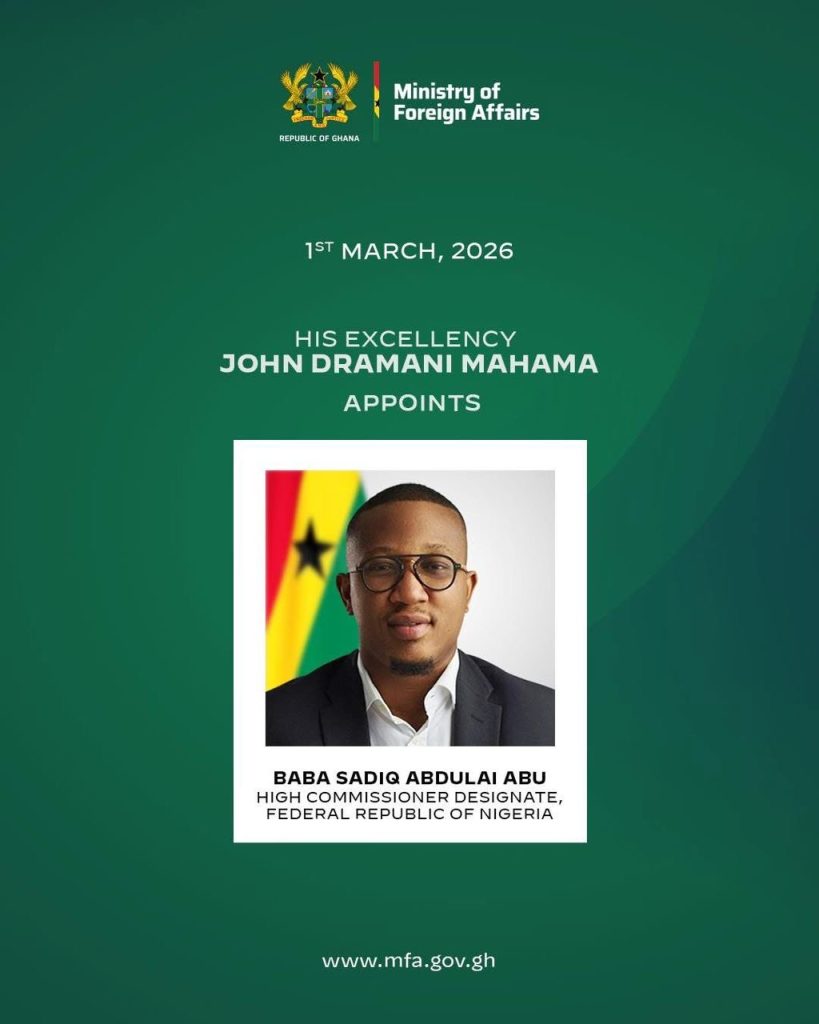 President John Dramani Mahama has appointed Baba Sadiq Abdulai Abu as Ghana’s High Commissioner-Designate to Nigeria, marking a strategic shift in Accra’s diplomatic representation in West Africa.