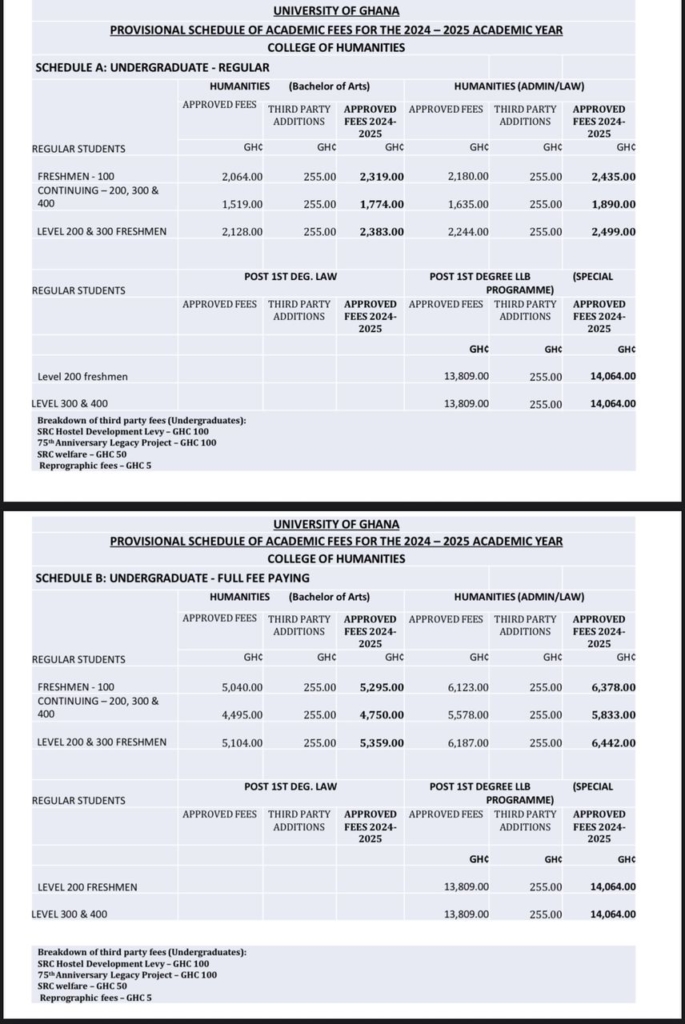 However, some Level 200 and 300 Humanities students under a different fee category paid as much as GHS 2,383, inclusive of third-party charges.
